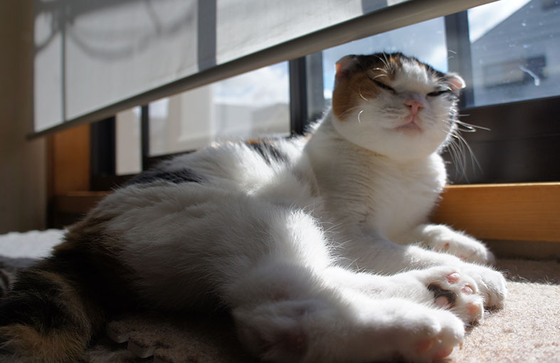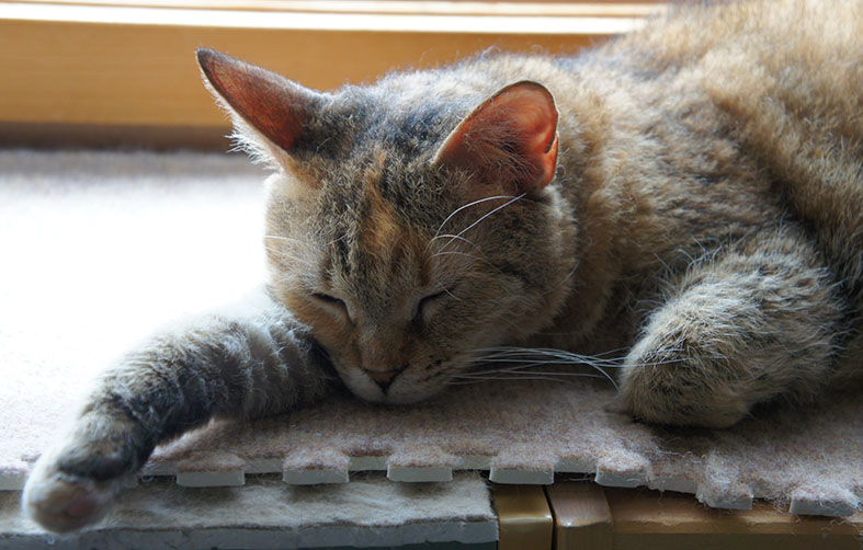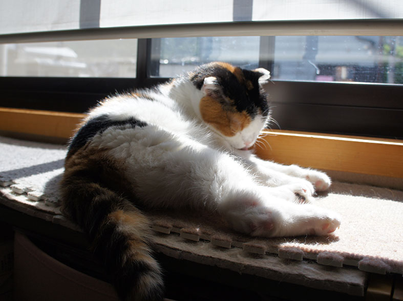 小麦と小春が時間差で別々に日向ぼっこしていました。