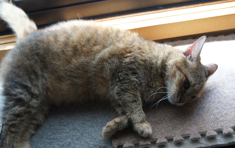 スコティッシュの三毛猫。ラパーマの小麦も一緒に暮らし始めました。