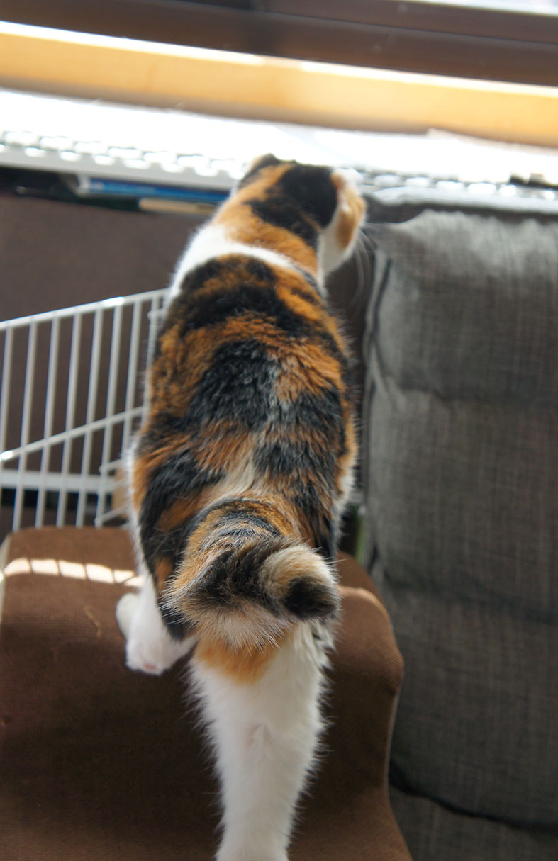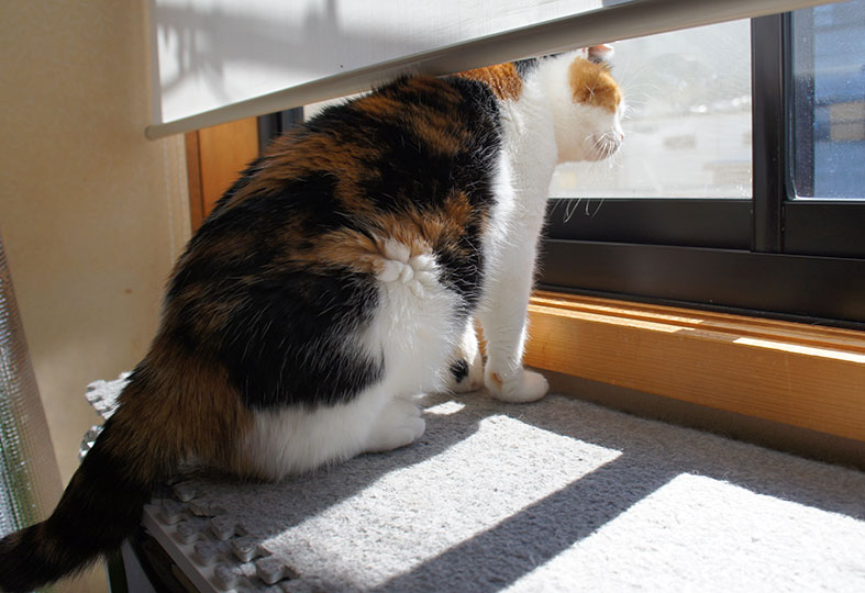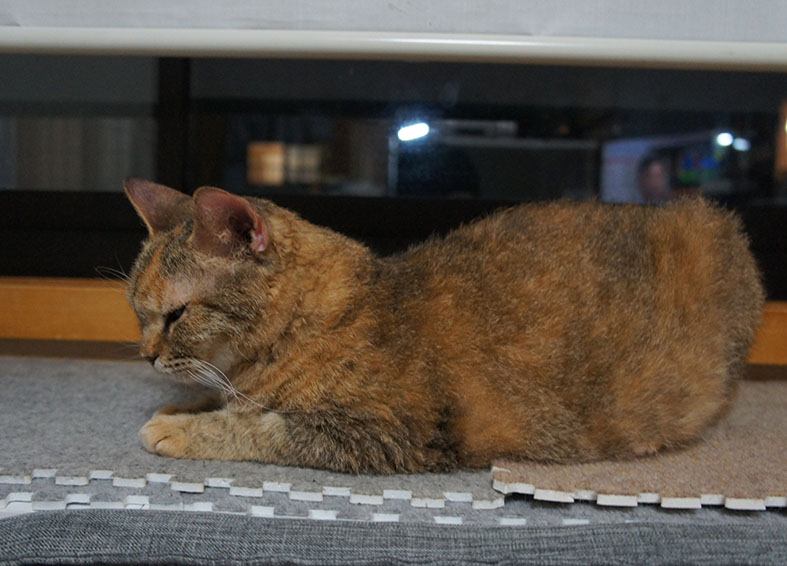 暑い日ですが、小春は気にせずに日向ぼっこです。