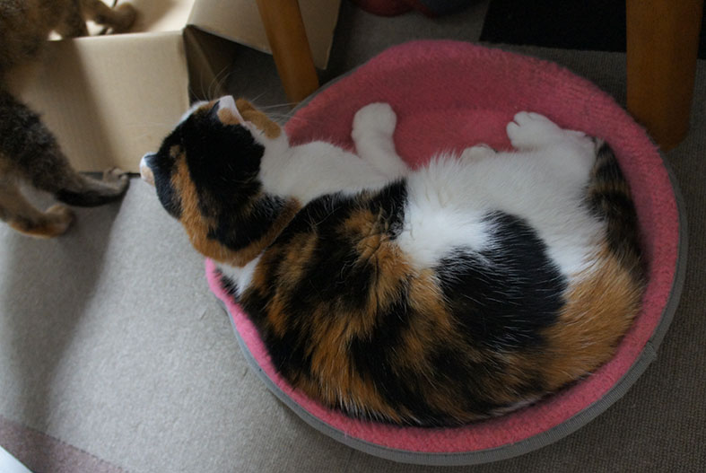 スコティッシュの三毛猫。ラパーマの小麦も一緒に暮らし始めました。