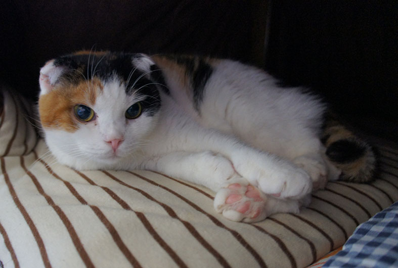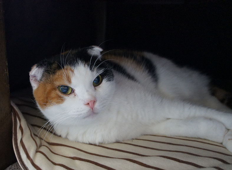 スコティッシュの三毛猫。ラパーマの小麦も一緒に暮らし始めました。
